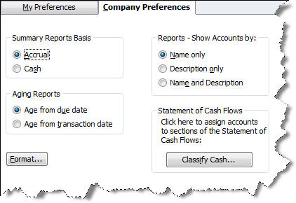 If you want to change this, click Edit | Preferences | Reports & Graphs | Company Preferences and click the desired button: