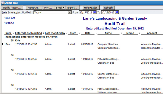 Although this may seem Orwellian, you may find that you sometimes need to carry out forensic research on a particular QuickBooks transaction. In layman’s terms, this means looking into who changed or deleted a transaction, determining what date the transaction changed, and how the transaction looked before it changed.